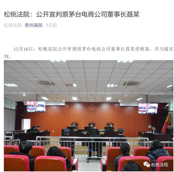 12月16日,贵州省松桃法院公开审理原茅台电商公司董事长聂永受贿案,并当庭宣判。