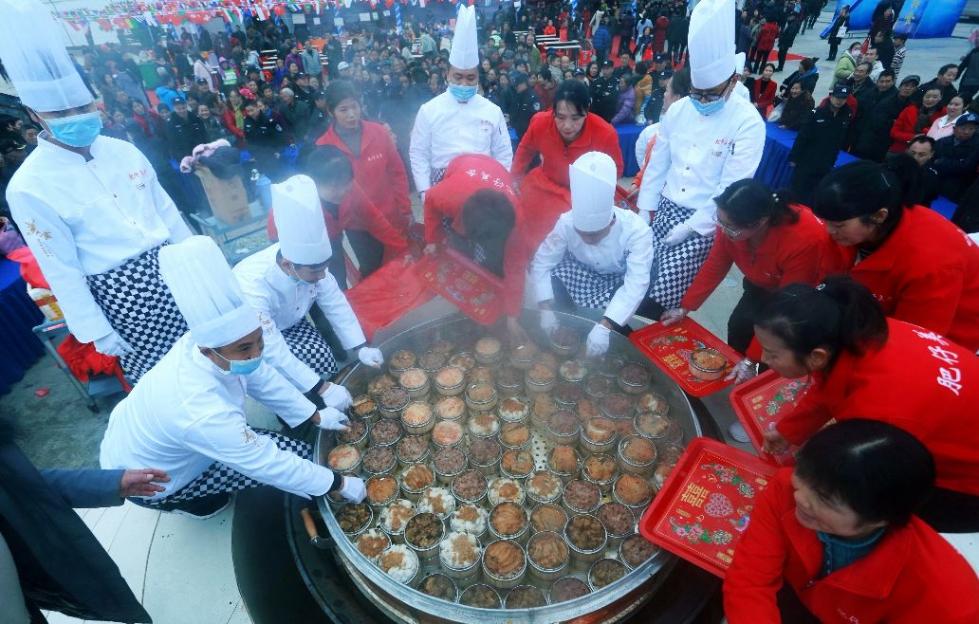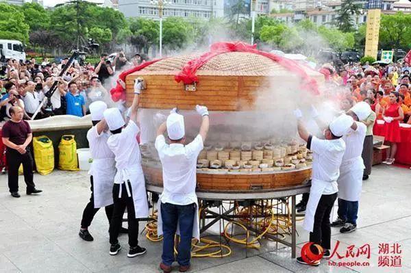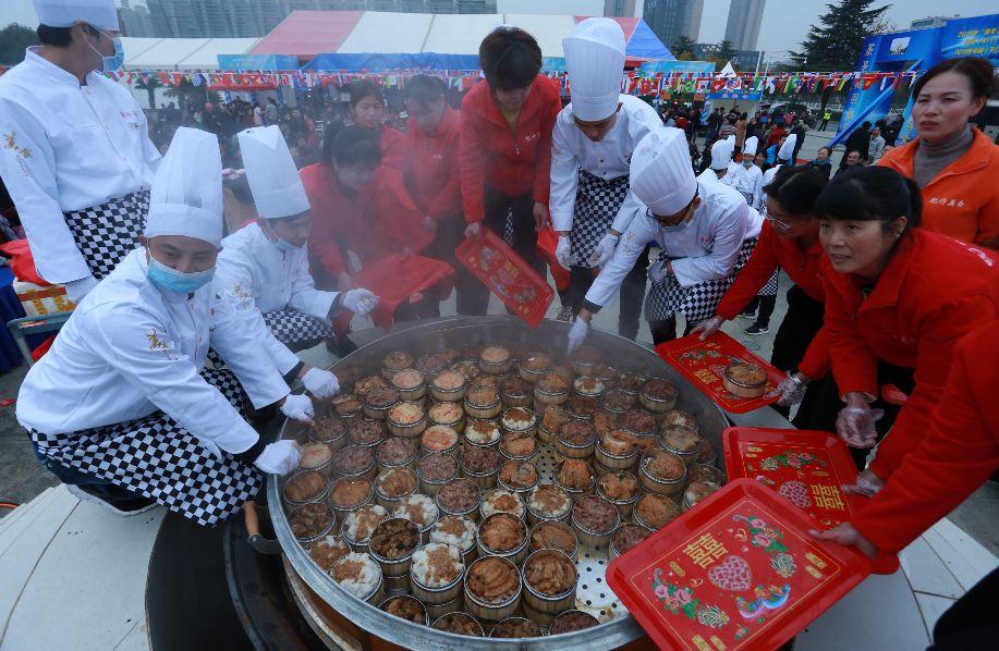 2019年“湖北工匠杯”楚菜职业技能大赛暨中国(天门)第五届蒸菜美食文化节举行惠民蒸菜开笼仪式。
