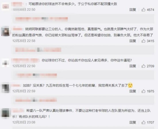 有网友评论道:“姚明阿联都要让三分的人,你竟然敢骂他,真是服气。也就是大郅脾气太好了,作为大郅的粉丝真的是很气愤,你已经被大郅粉丝骂惨了。但还是希望你加油,别辜负大郅。他太不容易了。”