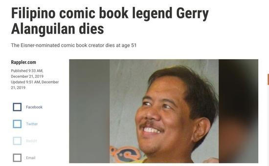 目前,Gerry Alanguilan的具体死因还没有公布。不过,在12月17日,他曾发过一条表达“痛苦”的推文,似乎身体状况不佳。