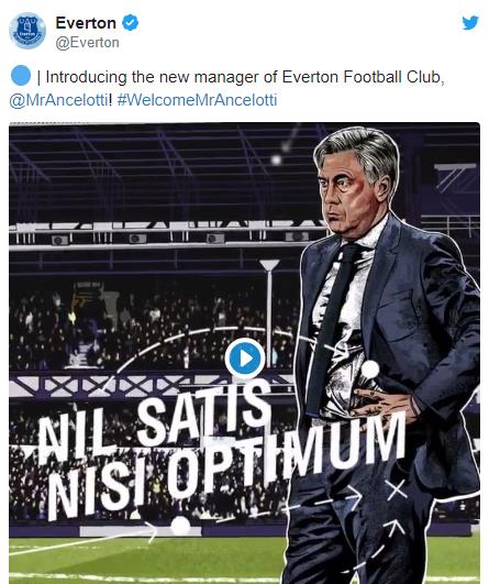 中新网12月21日电 21日晚,英超球队埃弗顿官方宣布安切洛蒂执教球队,双方签约四年半,后者前不久从意甲球队那不勒斯下课。