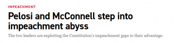 POLITICO新闻网分析认为,介于众议院和参议员对弹劾程序都有各自的理解,且这是美国历史上首次在参众两院被两党分别占领的情况下,对总统发起弹劾程序,本次弹劾案已经“划入深渊”。“双方各自都有对宪法的理解,但又不愿意深入到弹劾技术层面的交流……弹劾已经进入无政府状态。”