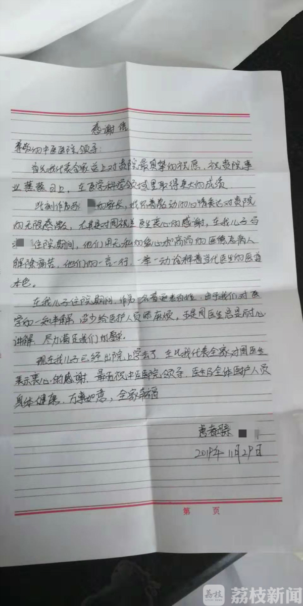 “现在我儿子已经出院上学去了,在此,我代表全家对周医生表示衷心感谢……”写信人王女士是李萍的同事。经过李萍推荐,王女士将她14岁、患有严重肛周脓肿的儿子小陈带到中医院,经过周祝兰的精心治疗,小陈很快康复出院,重返课堂。