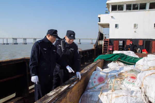 查获当天,南通海关缉私分局根据南京海关缉私局查缉指令,迅速调集警力40余名,出动缉私艇2艘开展查缉。当日19时,在南通九圩港闸口外长江水域截获可疑海船“月发27”,查获船载泰国白糖600余吨。
