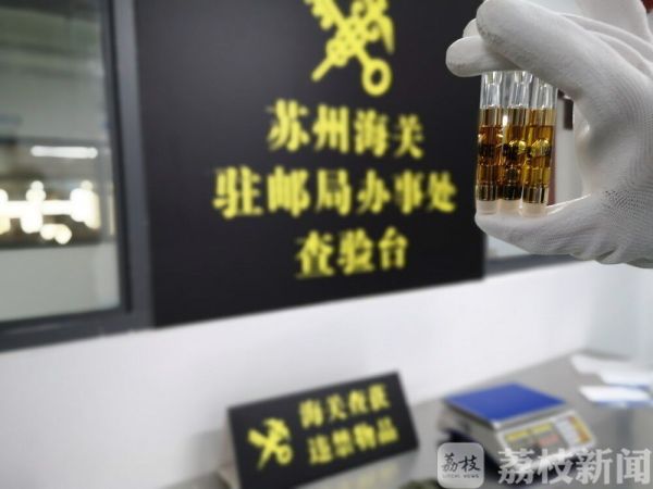 也是在最近,南京海关所属苏州海关在美国进境邮件中查获含毒品大麻油烟嘴3支,净重31.8克。这是2019年以来苏州海关查获的第10起大麻类毒品走私入境案件。
