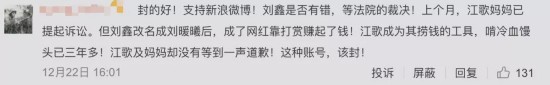 据此前报道,在江歌遇害1143天后,网友发现,三年前“江歌案”中的当事人刘鑫已经改名为刘暖曦,其微博ID@刘鑫6-6 已有32万粉丝,发布的长文下有5万多元的打赏,俨然成为一位大V。