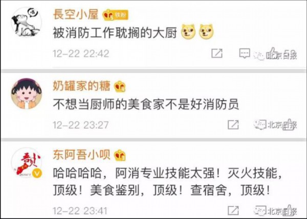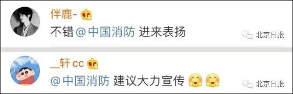 有网友@中国消防 ,“进来表扬!”