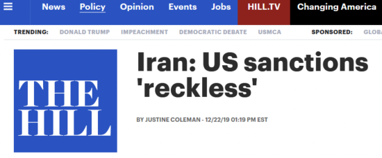 【环球网报道 记者 温家越】美国国务卿蓬佩奥上周宣布对伊朗实施制裁,据美国《国会山报》22日报道,伊朗外交部长扎里夫当天在推特发文认为,美国的制裁措施显露出上瘾的迹象,病态且不计后果。