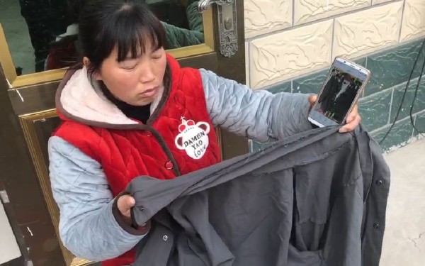 小迪母亲展示小迪生前穿的衣服,衣领及里子有扯破痕迹。 受访者供图