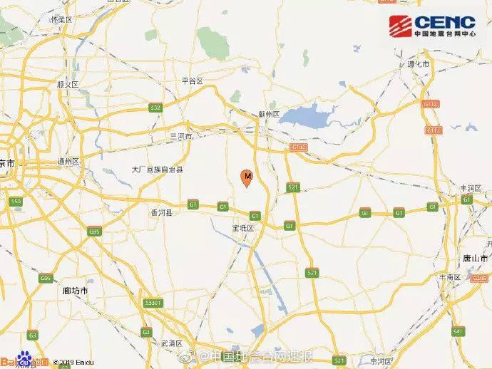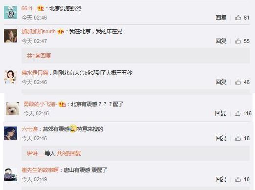 地震发生后,北京,河北燕郊、唐山等多地网友表示有震感。