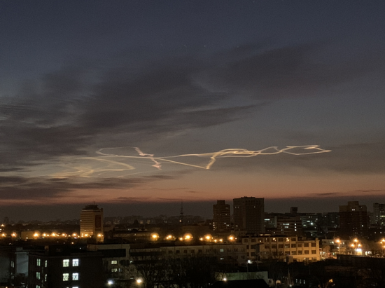 事实上,近年来夜光云在国内外已经多次出现。如去年日本在鹿儿岛进行火箭发射,火箭发射后尘埃和水汽进入高层大气,在日本多地上空形成壮观的夜光云。就在本月7日,我国华北平原多地在傍晚也见到了类似的“七彩祥云”。那一次是我国快舟一号甲运载火箭发射所形成的的夜光云。这类发射过程中产生的水蒸气尾气及带动的高层气流扰动,在清晨或者黄昏时分,正巧遇上地面渐昏,高空依然有阳光照亮,就形成了如此奇观。