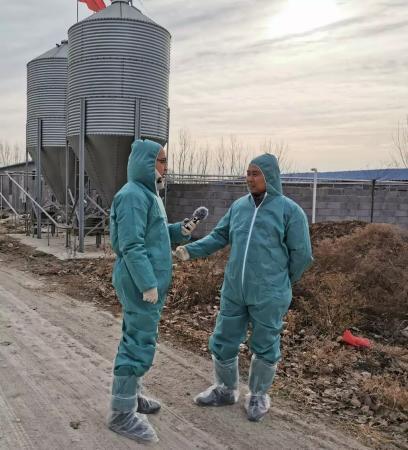 记者这次蹲点的地方是山东省德州市夏津县的一家生猪养殖企业。在采访之前,记者从未想到接近一个养猪场是如此的困难。为了切断一切外界可能疫病传染源,记者的车停在了离养殖场还有200米左右的地方,记者和养殖场管理员老李等一行四人下车,开始换上医用的隔离服,从头到脚裹个严严实实。