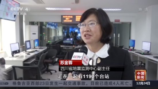 四川省地震监测中心副主任 苏金蓉:测震台网目前我们已经建成了。今年建了730个台站,和在现有台网的基础上,汇集在一起有1190个台站。到2020年底的时候我们整个四川就汇集的有2003个台站汇到我们中心。