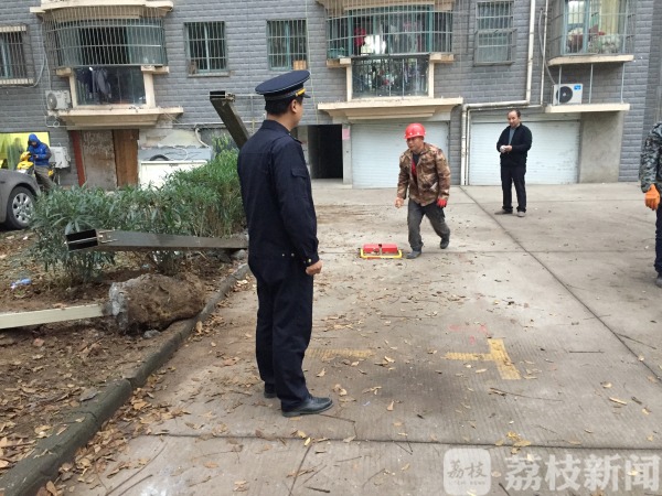 泰山街道综合执法大队了解情况后,立即组织人现场勘查,发现该违建车棚为钢架结构,占地约15平方米,三根立柱深深地打进绿化带内并用水泥浇筑,除此之外业主还私拉电线用于车棚的照明,存在严重的安全隐患。