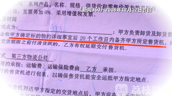 今年7月,尹先生和南京贵族鸭电子商务有限公司签了一份购销合同,根据合同约定,南京贵族鸭电子商务有限公司承诺20个工作日内把尹先生投资的两台自动售货机投放运营,具体的运营工作由公司负责,尹先生等着赚钱就可以了。