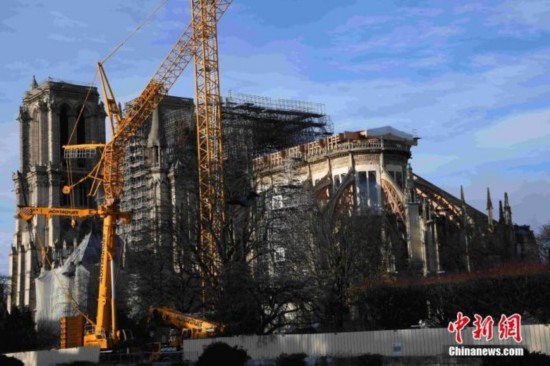 当地时间12月22日,巴黎圣母院修复工作紧张进行中。尽管圣诞节即将来临,修复仍在继续。中新社记者 李洋 摄