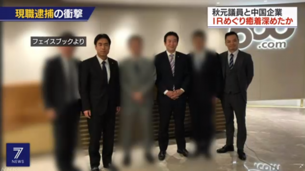 12月,秋元曾和自民党众议员白须贺贵树、自民党前众议员胜沼荣明拜访该公司位于深圳总部。两人的事务所均已被检方搜查。