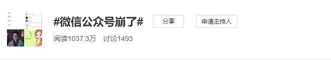 当前,“微信公众号崩了”话题已经在微博引发关注,阅读量突破了1037万,1493人参与讨论。众多新媒体小编纷纷调侃,是否可以早点下班。也有正在编辑中的小编忘记保存,感慨“在线崩溃”。