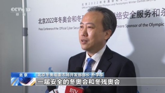 北京冬奥组委市场开发部部长 朴学东:网络的安全和杀毒软件的服务是非常重要的,能够确保我们北京2022年冬奥会和冬残奥会筹办过程当中和举办过程当中的网络安全。一届安全的冬奥会和冬残奥会也是对精彩、非凡、卓越的冬奥会的基本保障。