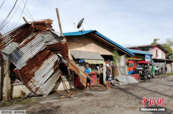 当地时间12月26日,台风“巴蓬”席卷了菲律宾中部偏远村庄和受欢迎的旅游区。图为在台风中遭受损坏的房屋。