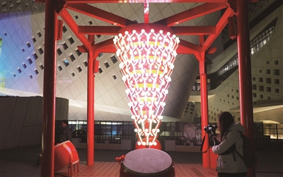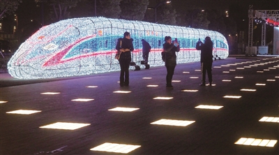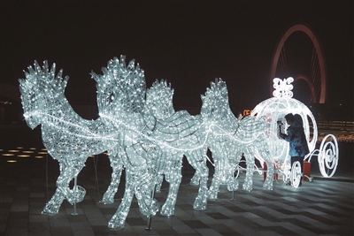 图为数十组颇具创意的灯组扮靓南京青奥村。
