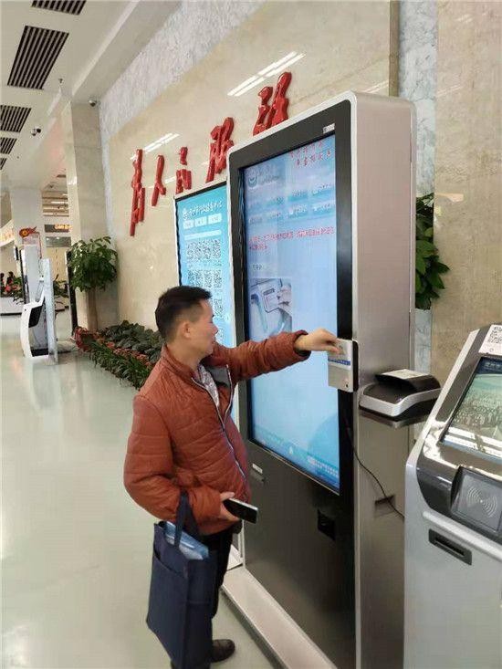 在福州市行政服务中心办事大厅,市民正在刷身份证自助取号 摄影 王礼林