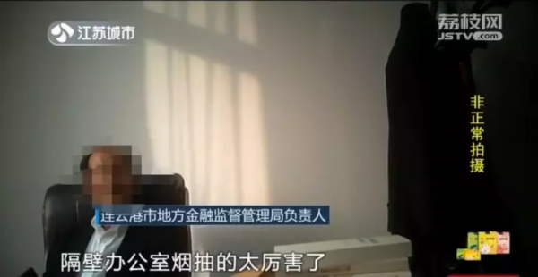 连云港市地方金融监督管理局办公室里,一位工作人员也在抽烟,对记者的提醒不以为然。