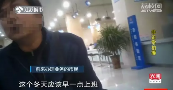 办理业务的人:冬天应该早一点上班,夏天还有个午休,六点钟下班,五点天都黑了。