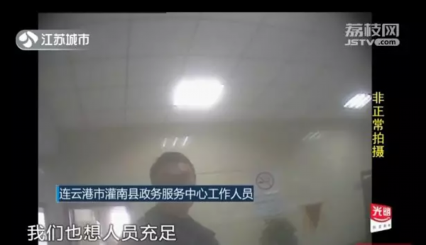 连云港市灌南县政务服务中心 工作人员:我们也很无奈,客观情况就这样,我们也想人员充足,一个人干三四个人的活 。