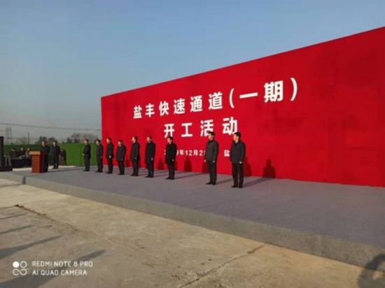 今天上午,盐城市又一“大交通”建设项目——盐丰快速通道(一期)工程开工。
