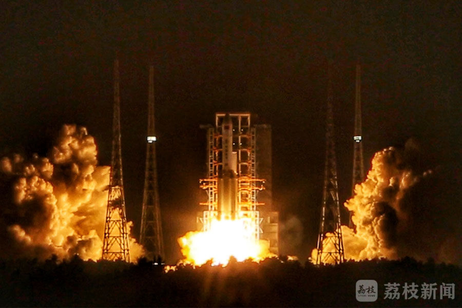 2019年12月27日20时45分,长征五号遥三运载火箭成功发射