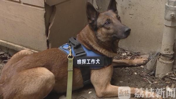 这只比利时马犬巴迪,今年3岁,来常州“工作”已经10天了。教练王友鹏介绍,巴迪已经训练了2年多,现在终于可以大显身手。由于狗的嗅觉灵敏度是人类的100万倍,所以查找燃气泄漏点是它们的强项。