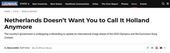 报道介绍说,其实“荷兰(Holland)”这个名字仅指该国12个省中的两个地方,即阿姆斯特丹所在的“北荷兰省”,以及鹿特丹和海牙所在的“南荷兰省”。然而据报道,这一名称却经常被用来代指整个国家。