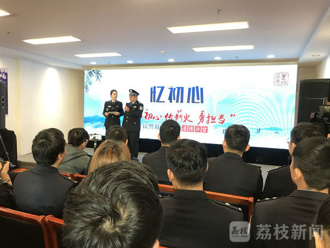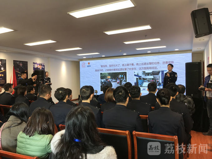 荔枝新闻讯(记者/沐梓)12月28日,德美江苏——全国网络媒体江苏行来到无锡市公安局滨湖公安分局观摩了一场形式特别的道德讲堂。从警30余年的老民警孙伟民的退休仪式将在这场主题为“忆初心 传薪火 勇担当”的道德讲堂上举行。