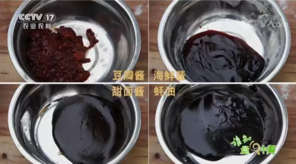 公鸡,土灶,果木全部到位,正式做地锅鸡之前,路光银有一个重要的步骤要做,炒制做地锅鸡的独家酱料。菜籽油,猪油和花生油三油合一,放入豆瓣酱,海鲜酱,甜面酱,耗油一起熬制,味道咸鲜辣,符合徐州当地人的口味。