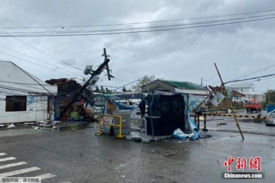 据报道,台风“巴蓬”圣诞节期间袭击菲律宾中部,造成房屋受损,村庄被淹。图为阿克兰省首府卡利博的卡利博国际机场外的建筑遭台风破坏。
