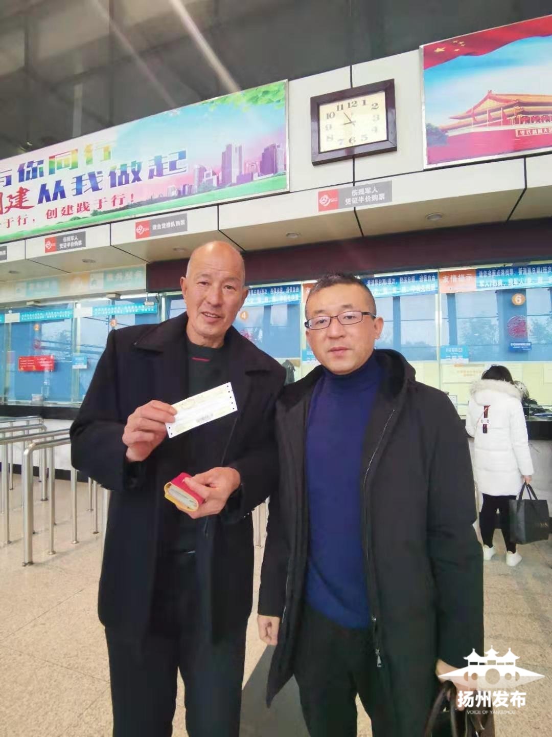 今早,刘红武给老人送来了早餐,并将老人一直送到扬州汽车东站,为其买好票后把他送到检票窗口坐下,因离发车时间还早,他又联系了老人的女儿后,反复叮嘱方才离开。