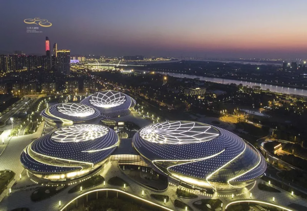 ▲夜幕中的江苏大剧院