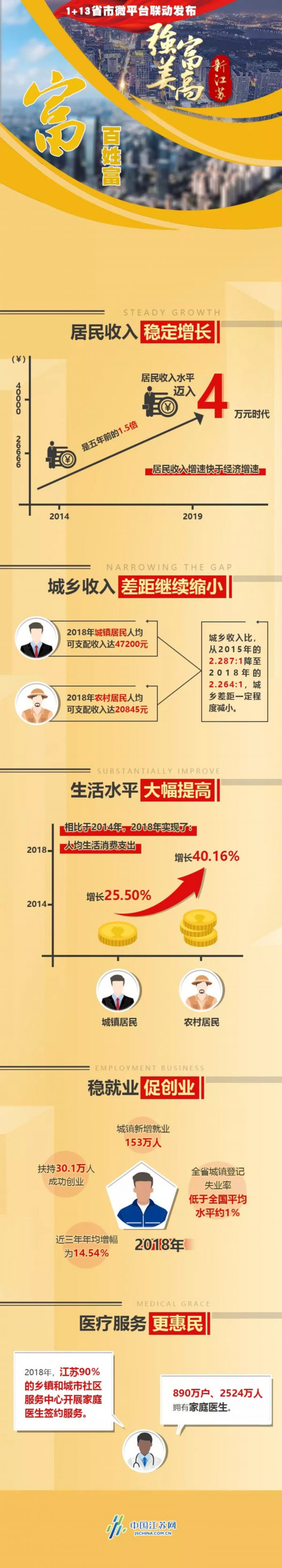 五年来,在高水平全面建成小康社会的进程中,8000万江苏人民生活持续改善,“富”的成果越来越可享、可感。