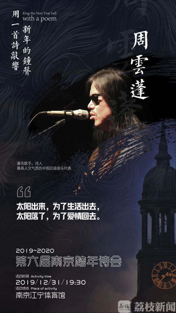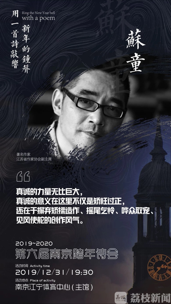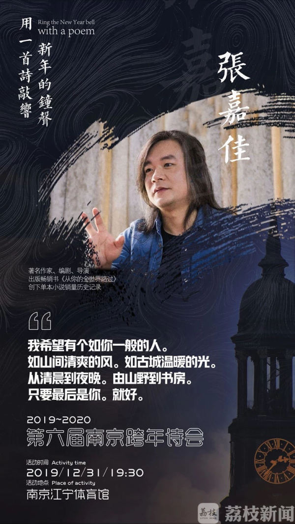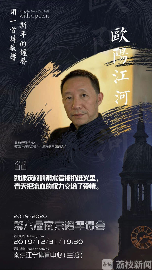 12个小时,720分钟,不间断通宵接力读诗,从今年一直读到明年。每年这时候的场景都是让人动容的,真正让我们感动的,不是诗歌如何存在,而是诗歌竟然存在。2019——2020第六届南京跨年诗会领衔的是著名诗人,真正的主角就是江宁体育馆的4000多名现场的观众。2019-2020第六届南京跨年诗会将于2019年12月31日19:00——2020年1月1日7:00在江宁体育中心(主馆)举办!荔枝新闻全程直播,茅台葡萄酒提供全程支持。