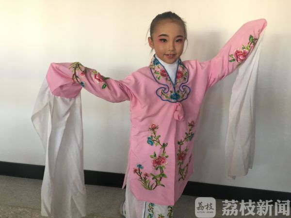 7岁的孙然学昆曲半年,很快就爱上甩水袖、唱昆曲。虽然是22个群演之一,但小姑娘完全拿出了“女一号”的心态在排练。这两天,为了在舞台上完美呈现,天天在家开嗓练曲目。