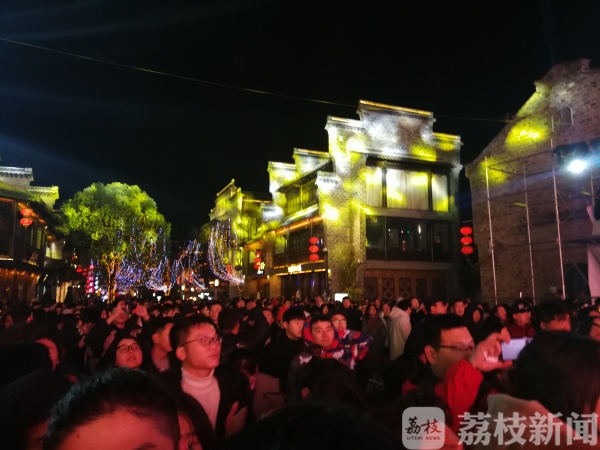 12月31日晚,老城南门东历史街区依托600年的明城墙,摆出一台“夜享秦淮启动仪式”的跨年晚会。