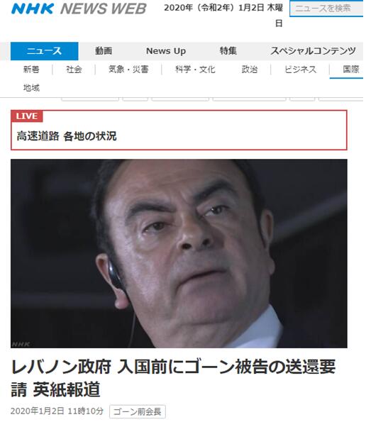 英国《金融时报》2日援引知情人士消息称,就在戈恩潜逃的一周前(12月20日),日本外务副大臣铃木馨祐正访问黎巴嫩,并在贝鲁特与黎巴嫩总统奥恩举行会谈。会谈时,奥恩谈到戈恩的案子,并向铃木馨祐施压,提出了引渡戈恩的要求。该报称,黎巴嫩政府曾先后两次向日本提出引渡戈恩的要求,而最近一次正是在戈恩潜逃的一周前。