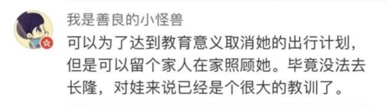 多数网友并没有盲目同意这位育儿大V的做法,而是提出了质疑。冒着孩子安全的风险,没什么好骄傲的,想教训孩子,有的是机会。
