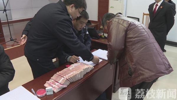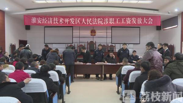 昨天(1月2日)下午,淮安经济技术开发区法院对一起涉及职工工资执行案款进行集中发放,现场通过现金发放的方式,让100多名职工拿到了本该属于他们的工资款总计166万元。