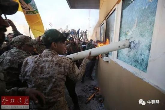 成百上千名愤怒的伊拉克人围攻了美国大使馆,使馆大门被撞开,玻璃被砸碎,接待区被焚烧,大使馆浓烟滚滚,美国军人被迫退守主楼楼顶,枪口对准抗议者。