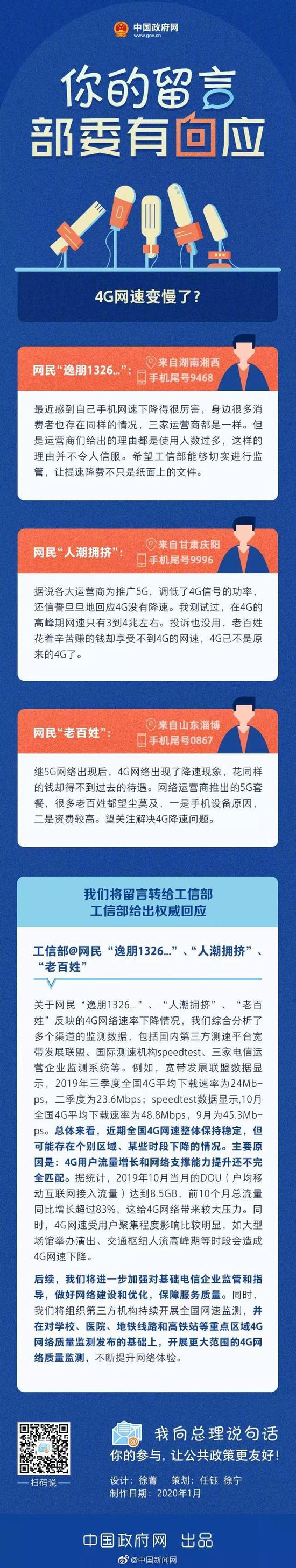 针对网友有关“4G网速变慢”的提问,工信部3日通过中国政府网回应称,总体来看,近期全国4G网速整体保持稳定,但可能存在个别区域、某些时段下降的情况。主要原因是4G用户流量增长和网络支撑能力提升还不完全匹配。后续,将进一步加强对基础电信企业监管和指导,做好网络建设和优化,保障服务质量。