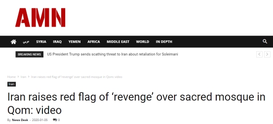 伊朗名将、伊斯兰革命卫队负责海外行动的指挥官苏莱马尼将军3日遭美军空袭致死引爆中东。综合中东媒体AlMasdarNews、美国《华盛顿观察家报》5日消息,在苏莱马尼被杀的一天后(4日),伊朗“圣城”库姆的贾姆卡兰清真寺有史以来第一次悬挂起了一面象征着“复仇”的红旗。