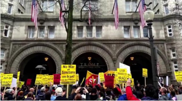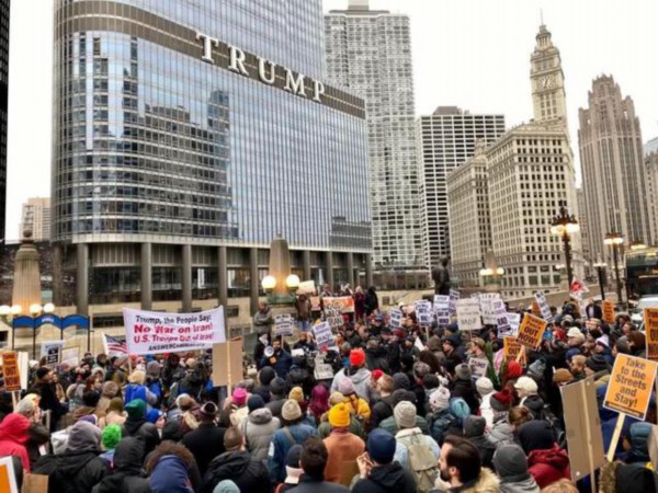 1月4日,美国华盛顿、纽约、芝加哥等城市街头抗议声此起彼伏。路透社消息称,在华盛顿的抗议人士先是在白宫外高喊:“没有正义,就没有和平。美国撤出中东!”然后游行到数个街区外的特朗普酒店。抗议人士还举着写有“不对伊朗发动战争或制裁!”和“美军撤出伊拉克!”的标语牌。