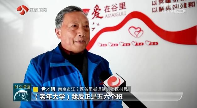 南京市江宁区谷里街道箭塘社区村民尹才明说:“老年大学我反正是五六个班我都参加了,我们这种活动就很充实、很快乐。”